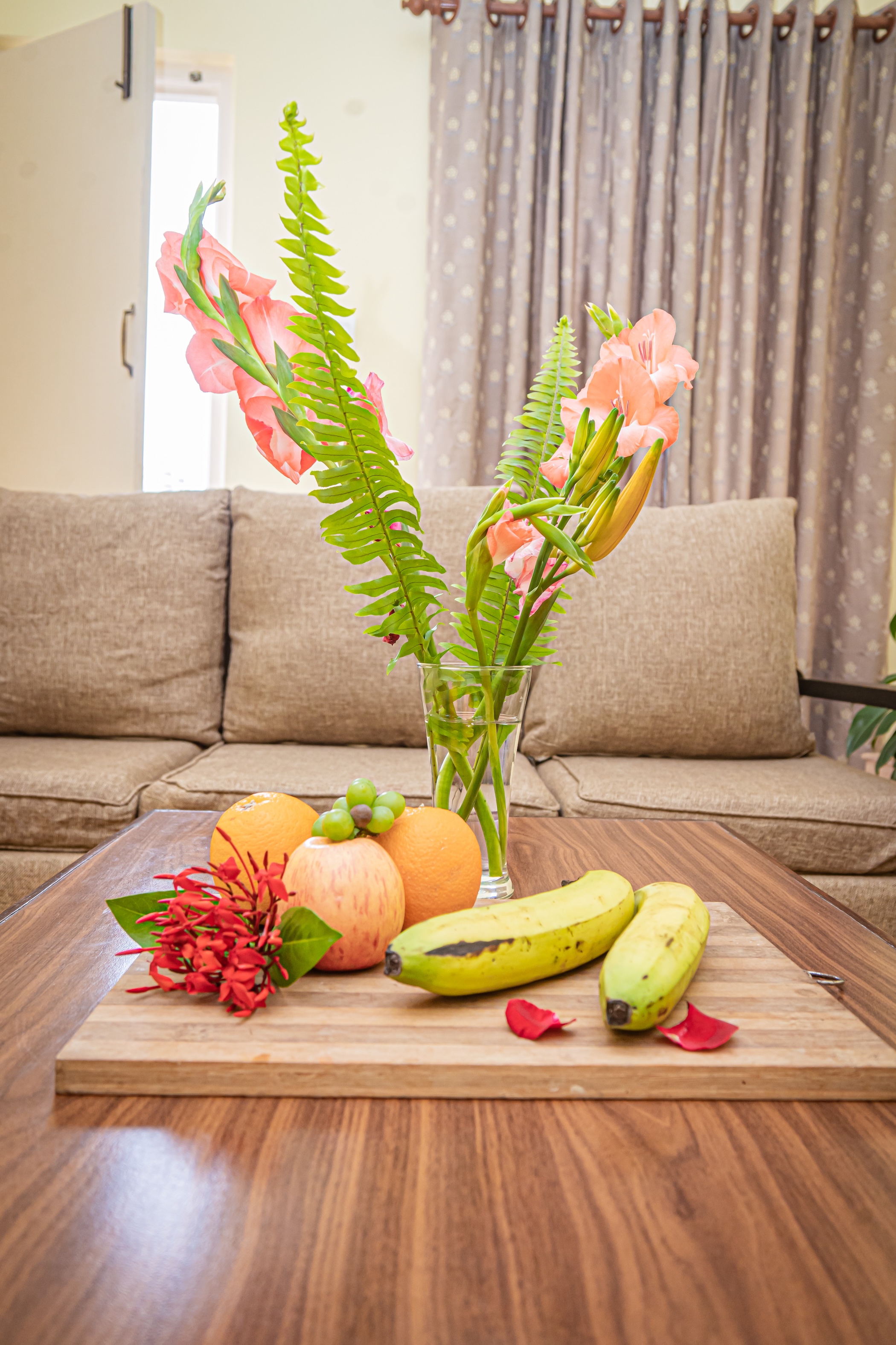 Our Suite Room defines opulence and space, offering a distinct living area separate from the bedroom for enhanced privacy and comfort. Ideal for families, VIPs, or anyone desiring extra room to spread out, the suite features a master bedroom with a King-size bed and an additional flexible sleeping area. The living room is furnished with plush sofas and a dining area, making it perfect for in-room dining or entertaining guests.